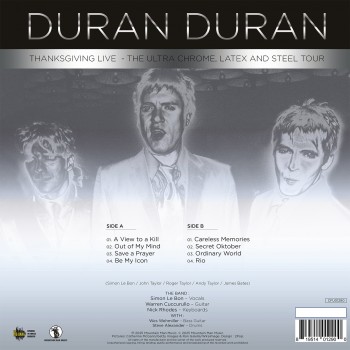 DATE DE SORTIE : 14 NOVEMBRE 2025 LES COMMANDES COMPRENANT DES ARTICLES EN PRÉCOMMANDE NE SERONT PAS EXPÉDIÉES AVANT QUE LES ARTICLES EN PRÉCOMMANDE SOIENT DISPONIBLES - POUR ÉVITER LES RETARDS D'EXPÉDITION, VEUILLEZ COMMANDER LES ARTICLES EN PRÉCOMMANDE SÉPARÉMENT DES ARTICLES EN STOCK. Voici le tout premier vinyle "LIQUID-FILLED" dédié à The Ultra Chrome, Latex & Steel Tour Highlights de Duran Duran ! Le "LIQUID-FILLED VINYL" est un disque conçu sur mesure, avec une cavité intérieure remplie d’un liquide NOIR décoratif rappelant le latex brillant de l’époque. Cette innovation fascinante dans l’univers du vinyle offre un spectacle visuel hypnotique à chaque rotation sur votre platine. Édition spéciale STRICTEMENT LIMITÉE À 400 EXEMPLAIRES EXCLUSIFS ET NUMÉROTÉS À LA MAIN dans le monde. Aucun repressage. Aucune seconde chance.