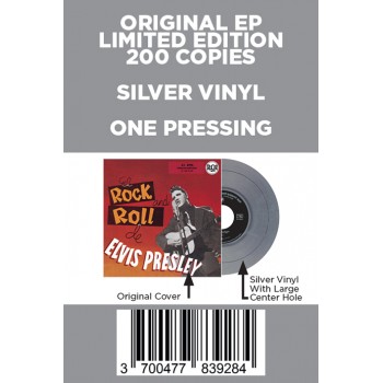 The Spanish 45 rpm El Rock and Roll (3-20163) is one of the most charming records from the early years of Elvis Presley’s career. Its colorful sleeve, typical of Spanish local editions, highlights a vibrant retro aesthetic that appeals to collectors. Featuring four essential tracks, this pressing is now highly sought after for its scarcity. SILVER vinyl edition, strictly limited to 200 copies.