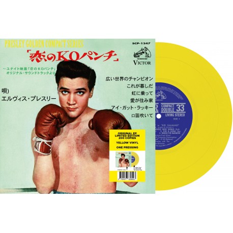 The Japanese 45 rpm Kid Galahad (SCP-1247) holds a special place in Elvis Presley collections. Its carefully designed sleeve, typical of early-1960s Japanese pressings, blends elegance with visual precision. Featuring songs from the film of the same name, this record is now highly sought after for its refined aesthetic and scarce production run. JAUNE vinyl edition, strictly limited to 200 copies.