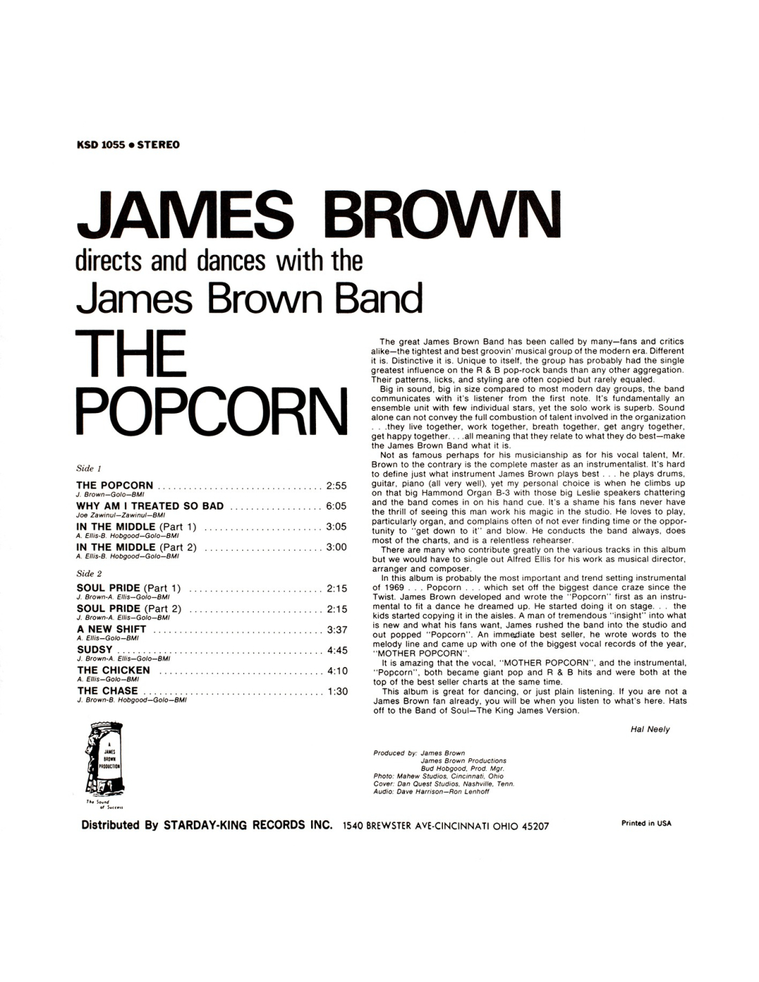 Le véritable nom de cet album est : “James Brown Directs And Dances With The James Brown Band The Popcorn”. Enregistre en prise directe, c'est à dire dans les condition du Live, cet album instrumental est un pur bijou... une vraie leçon de Funk !