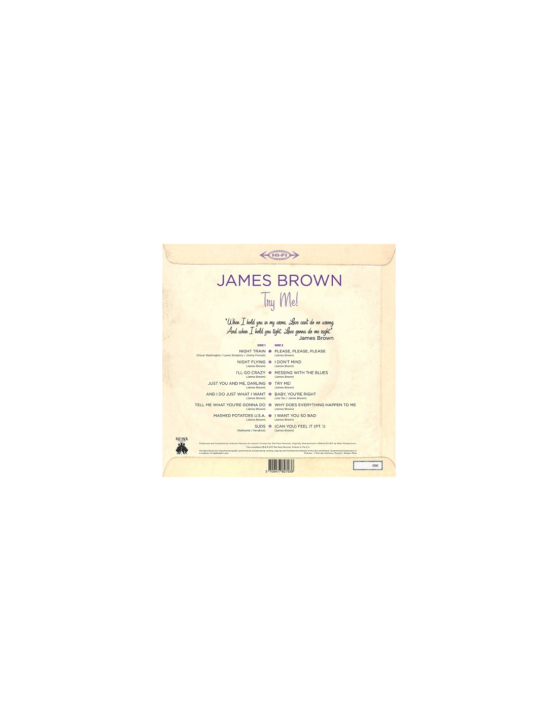 Le Meilleur de James Brown en Vinyle Violet 180 Grammes. Édition limitée et numérotée à 500 exemplaires.