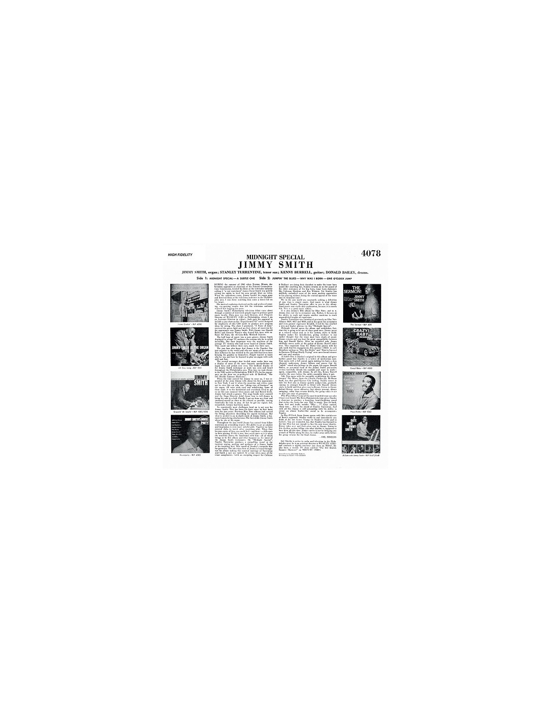 Le très prolifique Jimmy Smith enregistre en 1960 (le 25 avril) ce "Midnight Spécial" qui est en fait le pendant au spectaculaire "Back At The Chiken Shack" sortie l'année précédente.