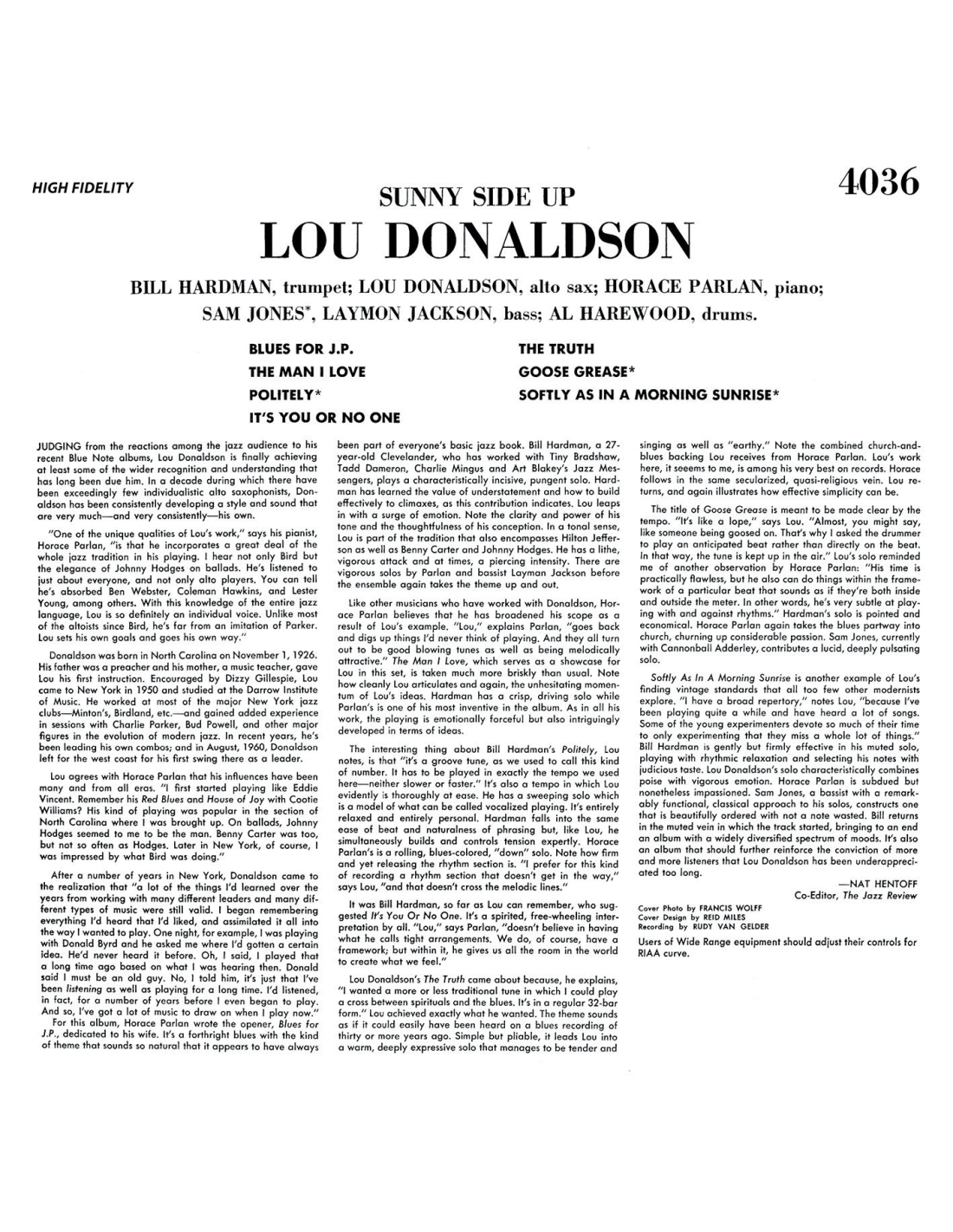 Lou Takes Off est un album enregistré en 1958. Considéré comme un des meilleurs albums de Lou Donaldson... il est ici accompagné du trompettiste Donald Byrd, le tromboniste Curtis Fuller, le pianiste Sonny Clark, le bassiste Jamil Nasser et le batteur Art Taylor… Bref que du beau Monde !!!VINYLE 180 GRAMMES EN EDITION LIMITEE A 1,000 EXEMPLAIRES....