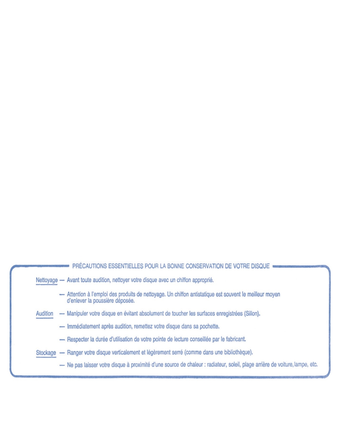 - CD noir (compatible tous lecteurs CD) donnant l'impression de retrouver le vinyle (avec son étiquette d'origine).