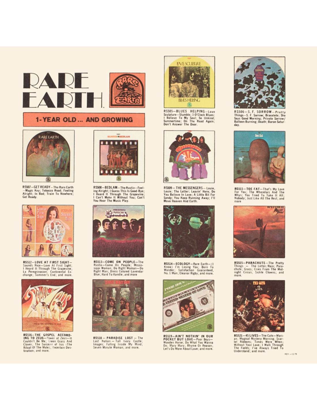 Back To Earth est le 8ème album du groupe Rare Earth. Après les départs de Peter Hoorelbeke (au chant) et de Michael Urso (à la basse)... cet album marque l'arrivée de Jerry La Croix (pour 2 ans) et de Reggie McBride (pour deux ans également).