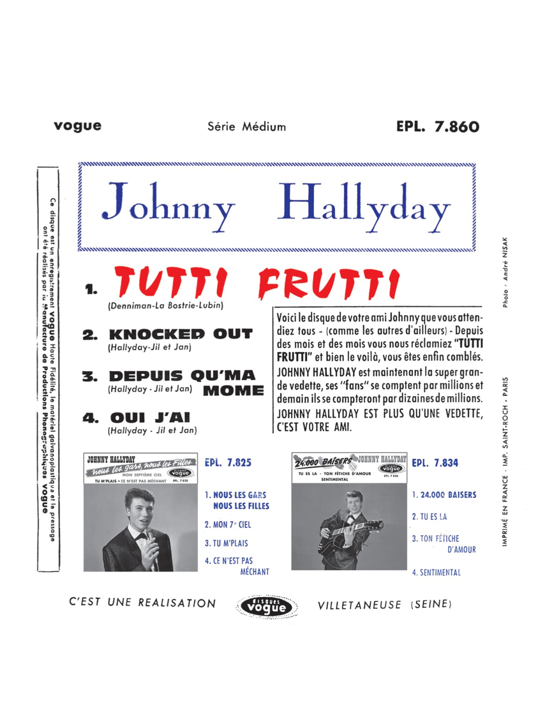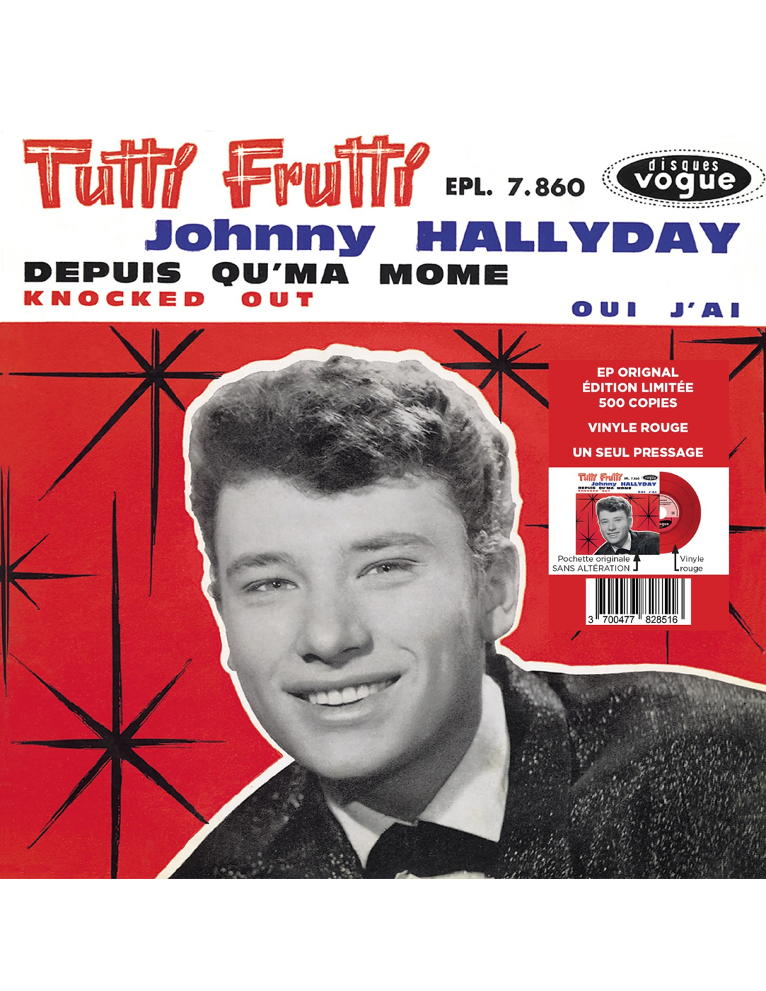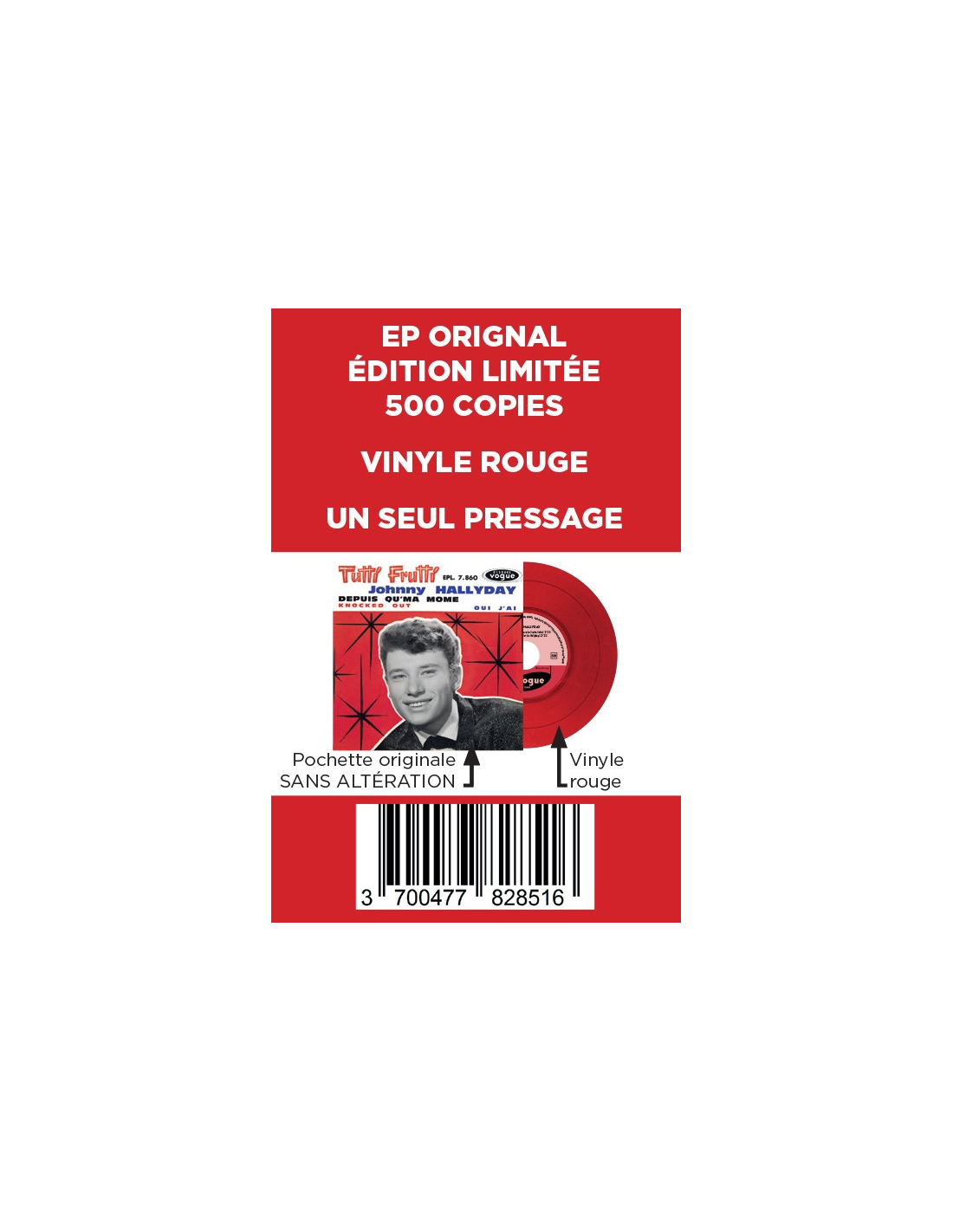 Pour la première fois, en édition TRÈS LIMITÉE, les premiers enregistrements de “L’idole” des jeunes en 45 tours de couleurs. Retrouvez les EPs sans altération… comme si vous retrouviez vos anciens EPs… comme neuf !