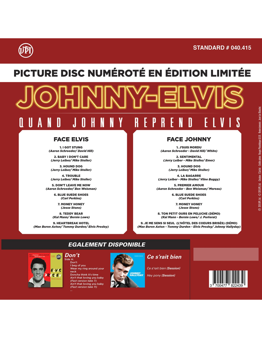 Quand Johnny Reprend Elvis est un Picture Disc RECTO/VERSO avec une face Elvis... avec 9 titres, et une face Johnny avec toutes les reprises des titres d'Elvis !