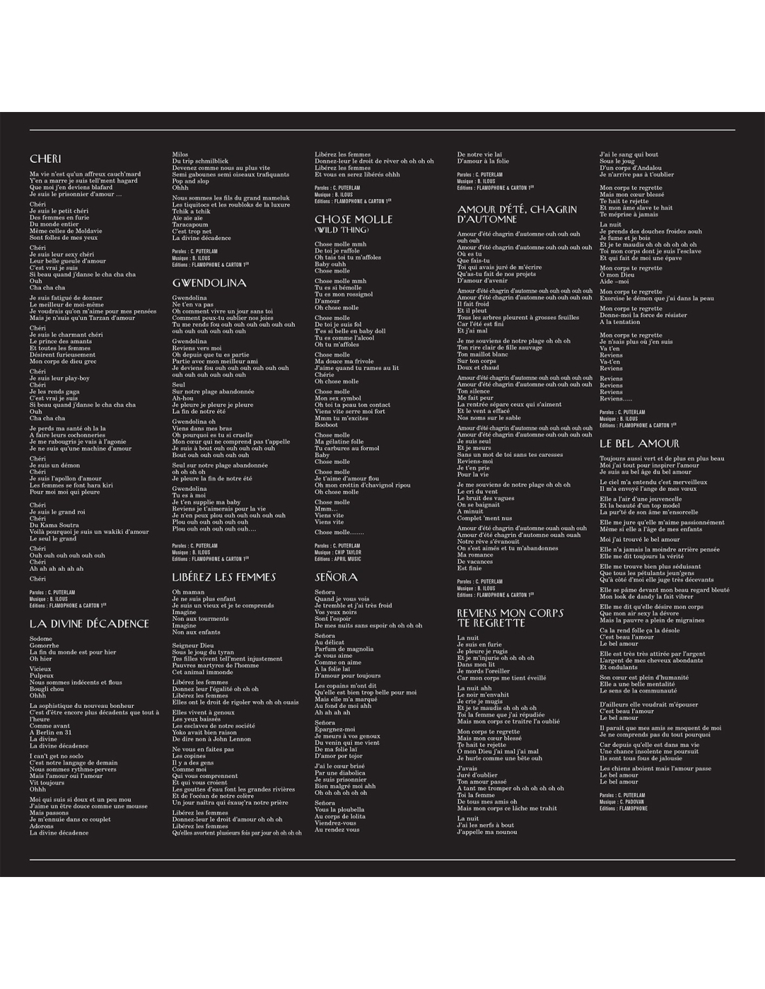 Claude Puterflam, Le génial auteur de Gwendolina et de Libérez Les Femmes, suite à la pression énorme de son talentueux public, à très humblement accepté afin d’échapper au harcèlement dont il fait l’objet, de rééditer en versions remasterisées et en vinyle quelques-unes de ses chansons les plus mélancoliques avec en bonus un nouvel enregistrement inédit !