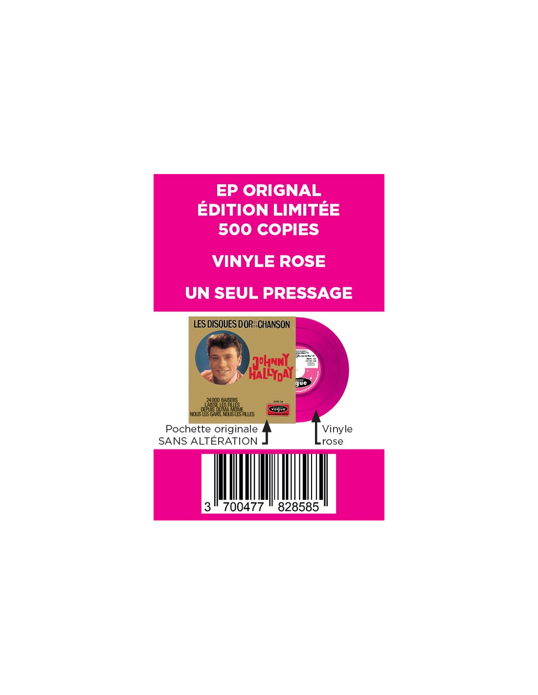 Pour la première fois, en édition TRÈS LIMITÉE, les premiers enregistrements de “L’idole” des jeunes en 45 tours de couleurs.