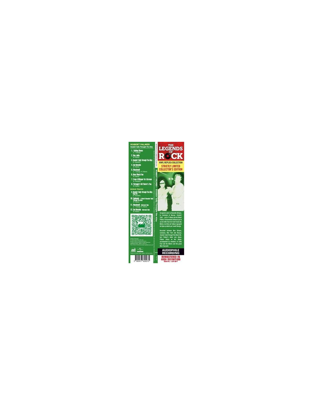 Enregistré entre la Nouvelle Orléans, La Louisiane et Nassau, Sneakin' Sally... est le 1er album solo de Robert Palmer. Furieusement influencé par le son de Little Feat et le Funk Fusion des Meters, les titres de l'album regorgent de bijoux produits par Lowell George.