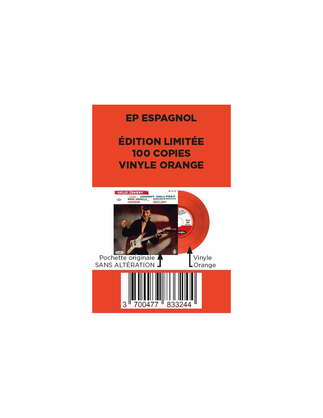Oui... vous avez bien lu... réédition du 45 tours Espagnol... extrêmement rare... fabriqué en vinyle ORANGE