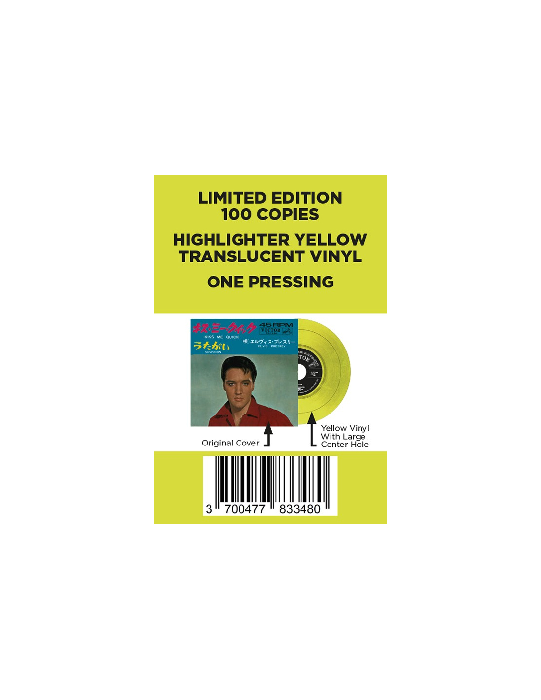 Oui... vous avez bien lu... réédition du 45 tours Japonais... extrêmement rare... fabriqué en vinyle JAUNE à 100 exemplaires.