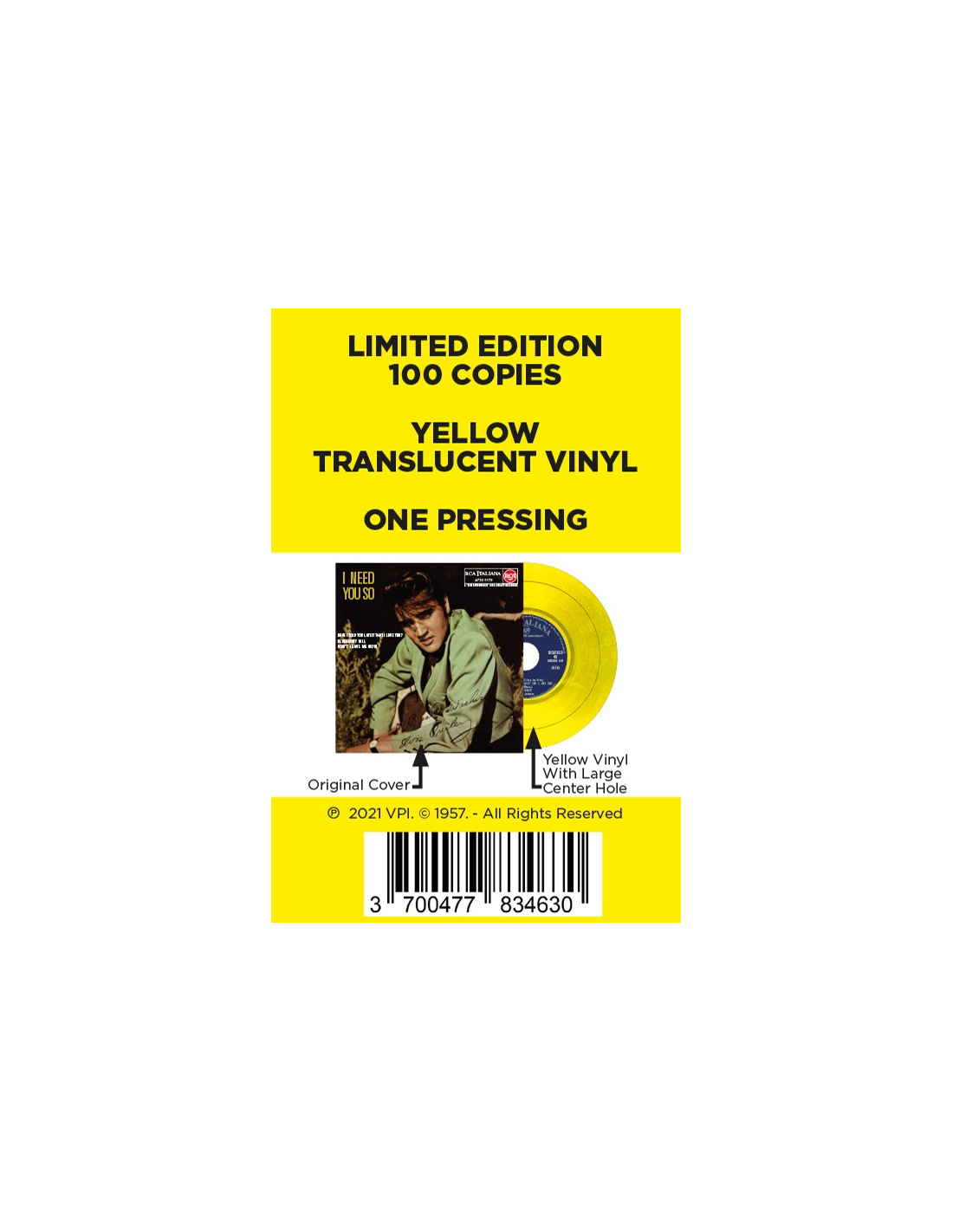 Elvis Presley - I Need You So - Vinyle Jaune (Italie) (Vinyle 7'')
