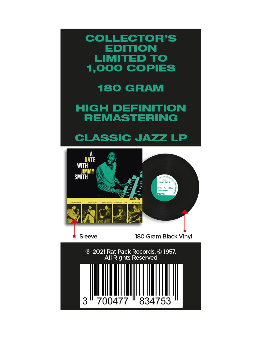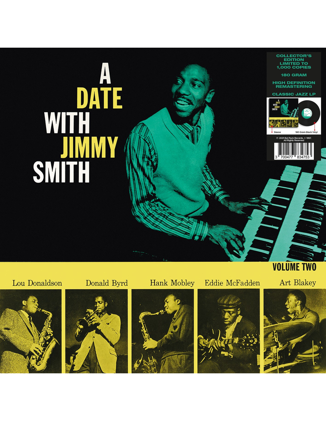 Enregistré au Manhattan Towers de New York City les 11 & 12 février 1957, cet album rassemble la crème des Jazzmen du moment. Jimmy Smith aux claviers est entouré de Donald Byrd à la trompette, Lou Donaldson au saxophone alto, Hank Mobley au saxophone ténor, Eddie McFadden à la guitare et Art Blakey & Donald Bailey à la batterie. Bref, un pur bonheur capturé live !