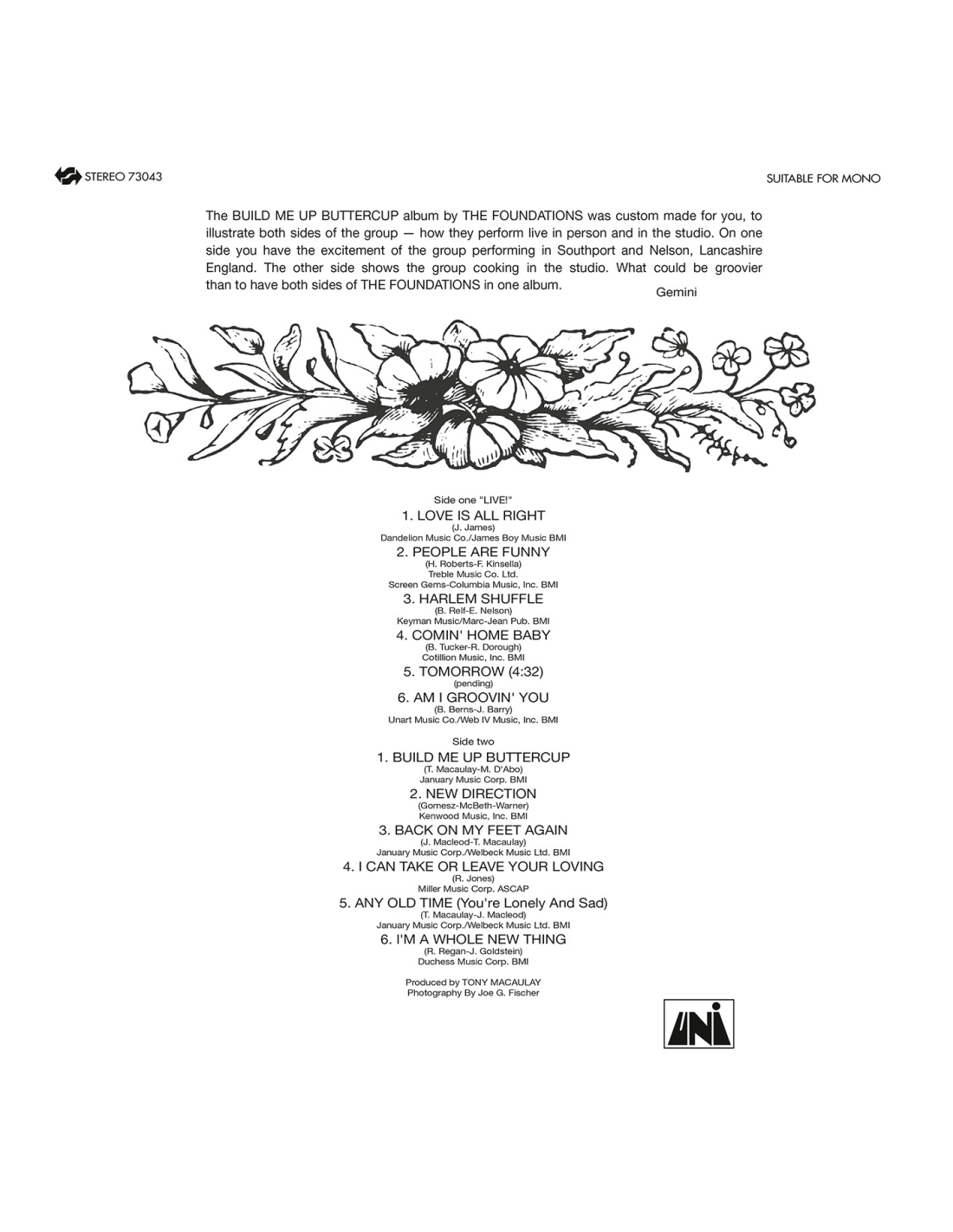 C’est en fait, une compilation regroupant les morceaux de Rocking the Foundations, le titre phare “Build Be Up Buttercup” avec sa face B ainsi que des titres des débuts.