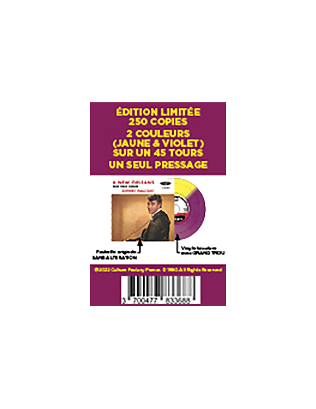 25cm en Édition limitée à 1 000 exemplaires.Vinyle TRICOLORE (JAUNE, VIOLET & ROUGE) un seul pressage.Inclus des maquettes inédites et des versions alternatives.Sous la direction de Claude François, Jr. découvrez ces pépites entièrement masterisées avec les technologies d’aujourd’hui.