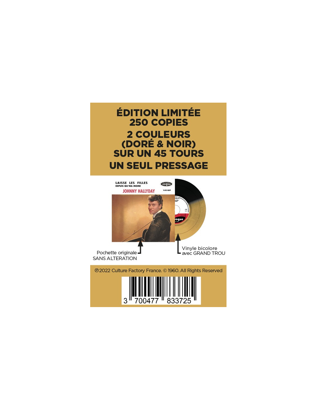 Retrouvez sans altération LA DERNIÈRE reproduction en vinyle Bicolore NOIR & DORÉ.