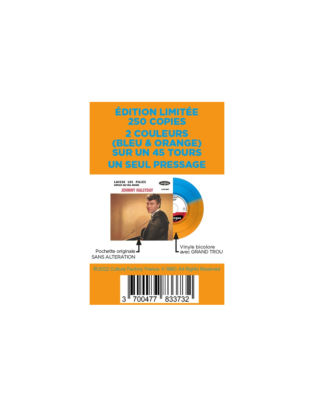 Retrouvez sans altération LA DERNIÈRE reproduction en vinyle Bicolore ORANGE & BLEU.