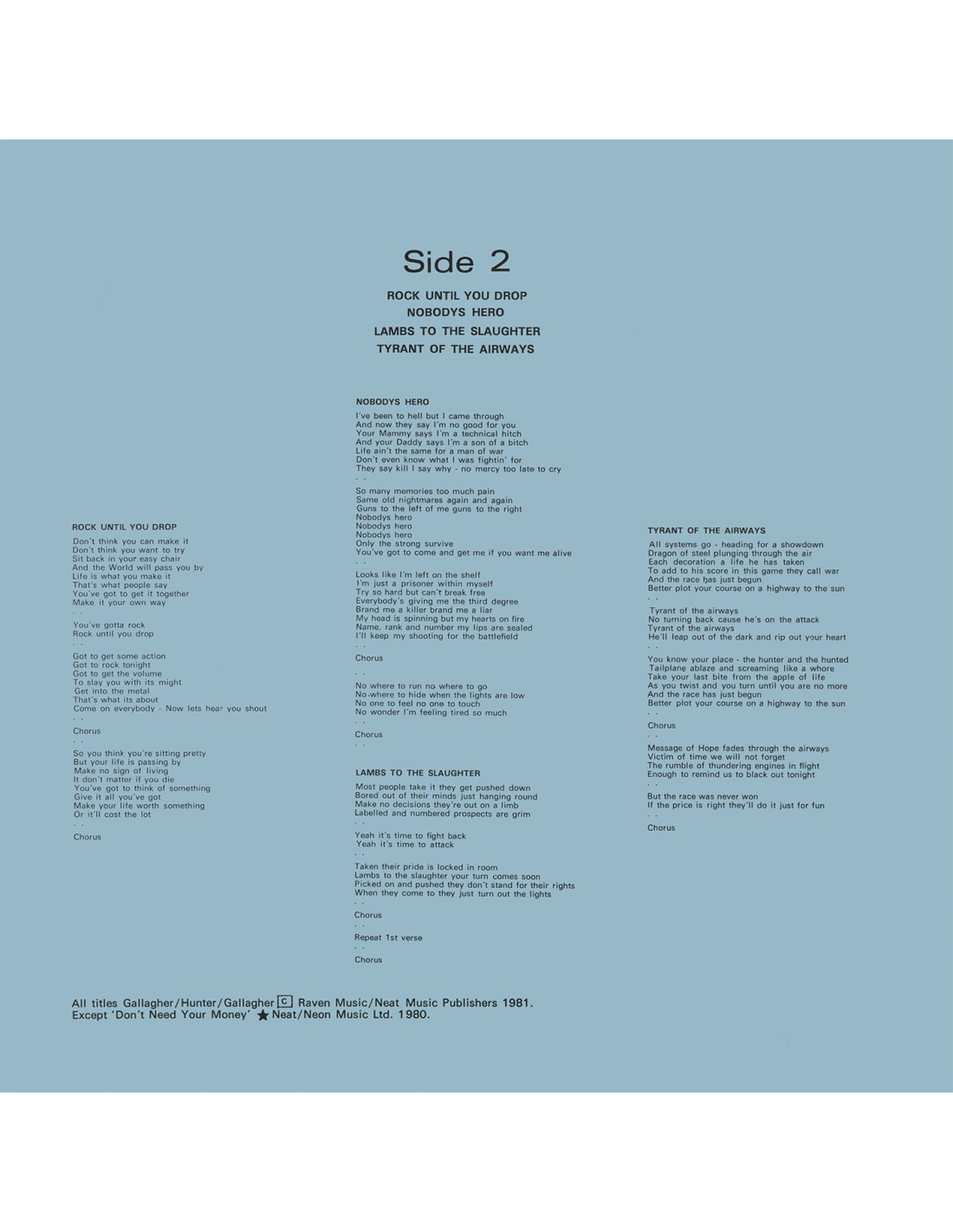 Pierre angulaire du movement NWOBHM (New Wave Of British Heavy Metal)… Rock Until you drop est le premier album de Raven.