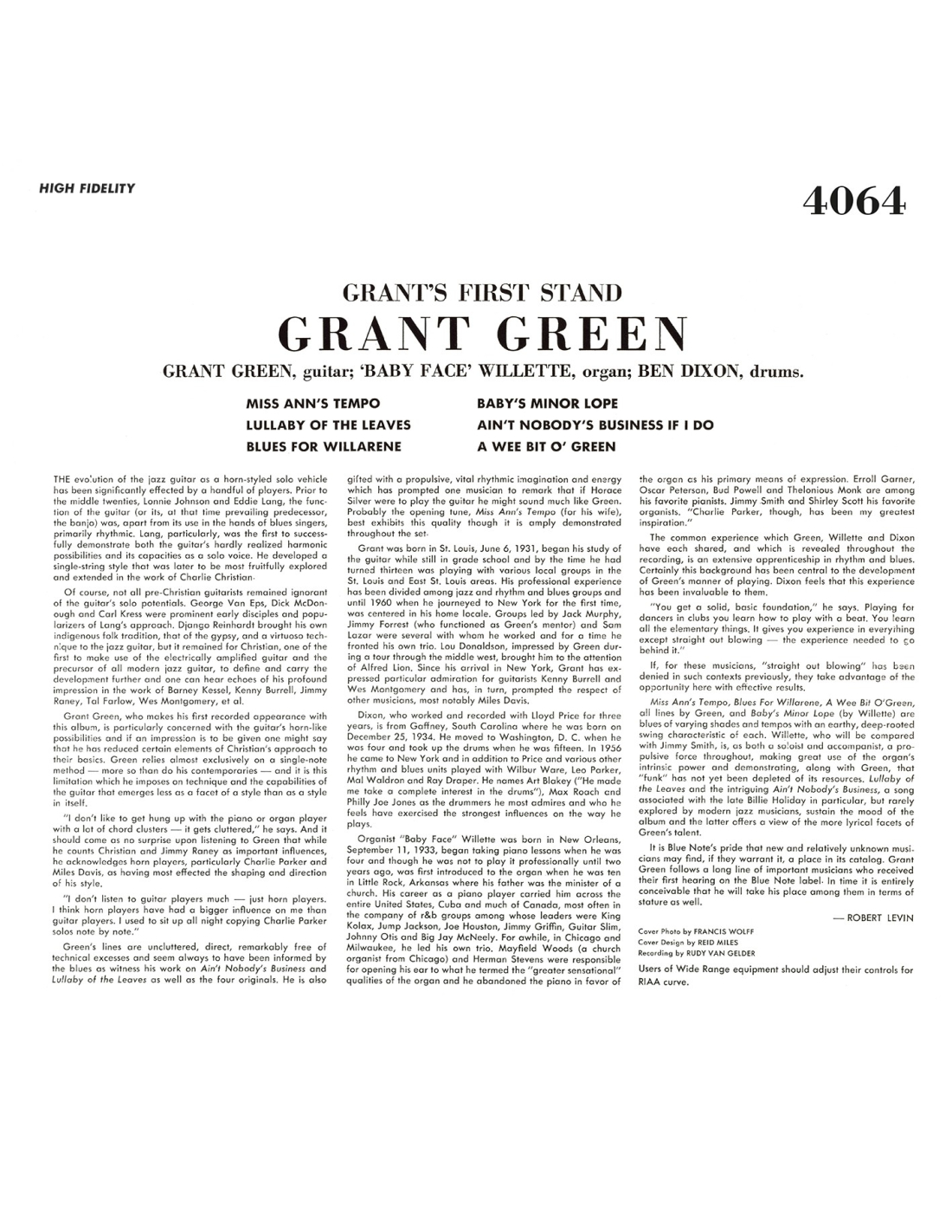 Paru en 1961 il installe la renommée de Green notamment grâce à ses partenaires : l’organiste Baby Face Willette et le batteur Ben Dixon… qui distillent au son Soul-Jazz sur les 6 morceaux de l’album.