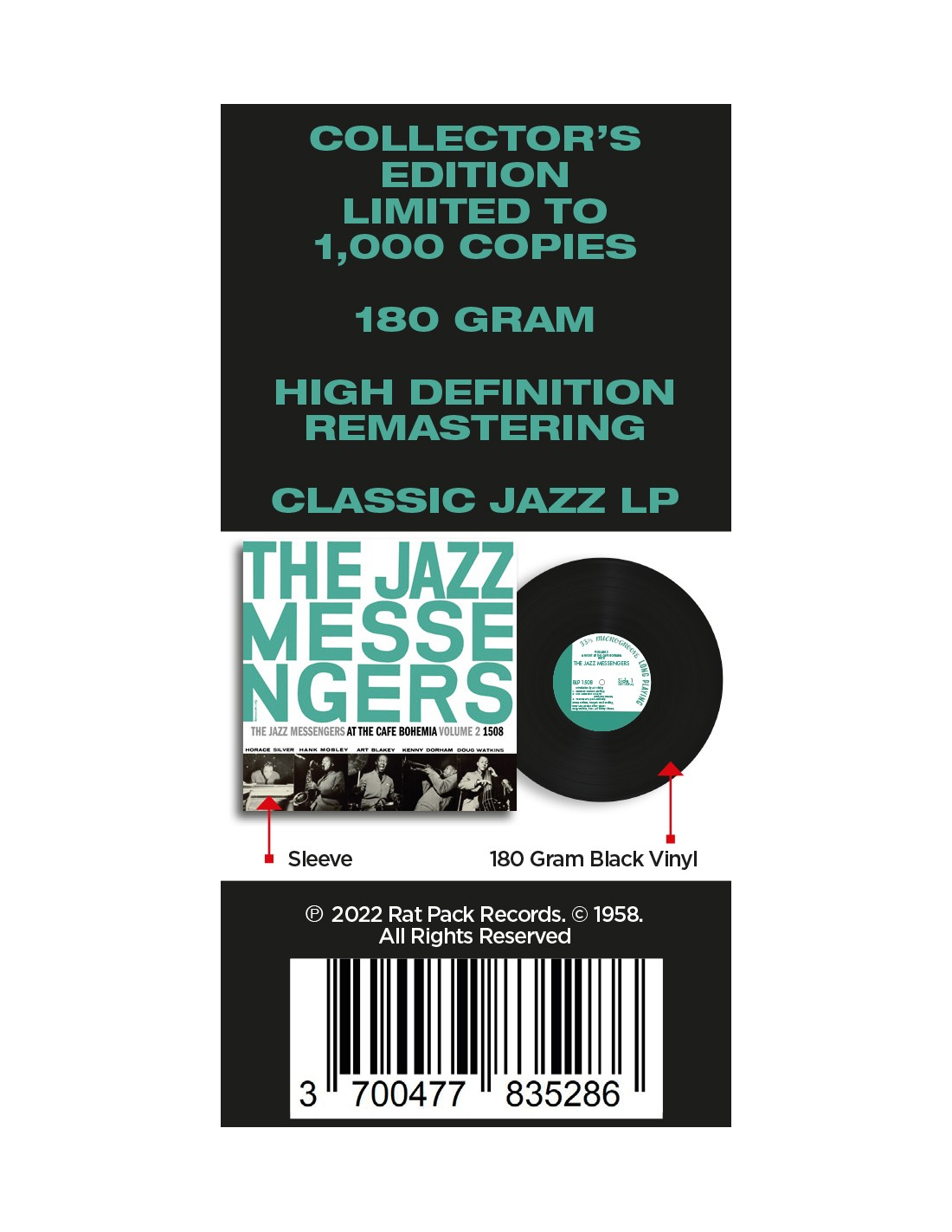 This record featured the original incarnation of The Jazz Messengers, one of Art Blakey's most endearing bands, and was the second of two volumes recorded at Café Bohemia, a famous night club in Greenwich Village in New York, New York on November 23, 1955.