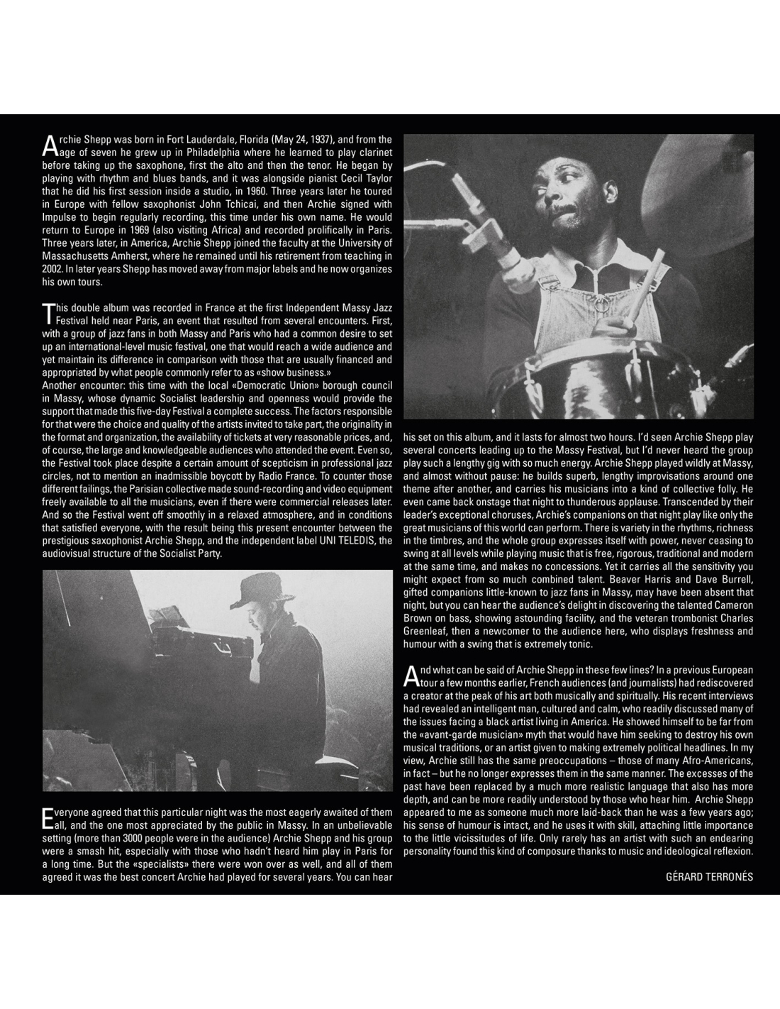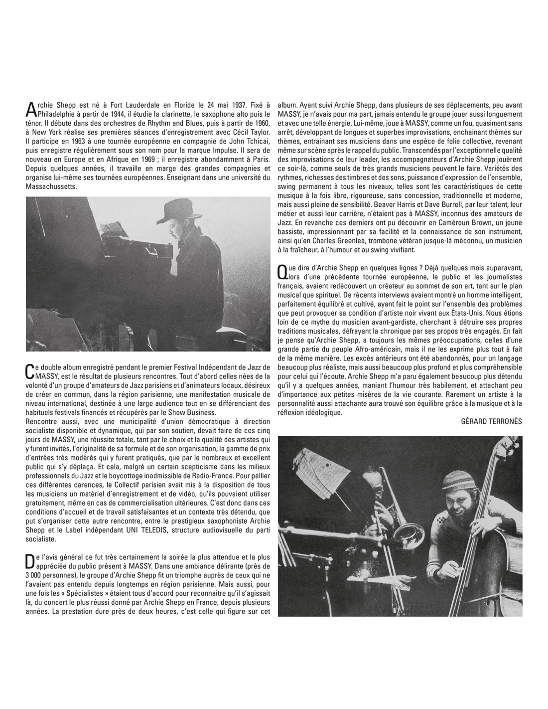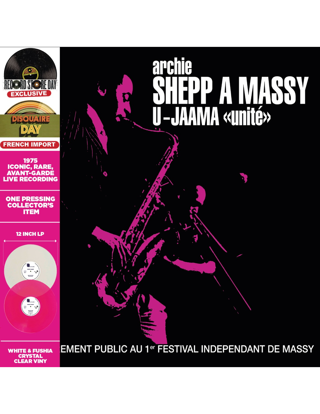 1975 Iconic, Very Rare Live Recording from The Massy in France. Archie "Vernon" Shepp American is a tenor saxophonist, composer, dramatist, teacher, and pioneer of the free jazz movement, known not only for his creative improvisation and colorful sound but also for his Afrocentric approach to music. The National Endowment for the Arts named Shepp a Jazz Master in 2016. This double LP set, has deluxe packaging that will include an OBI strip, gatefold album jacket with two pockets, printed inner sleeves, original record labels and specialty color vinyl (PINK & WHITE).