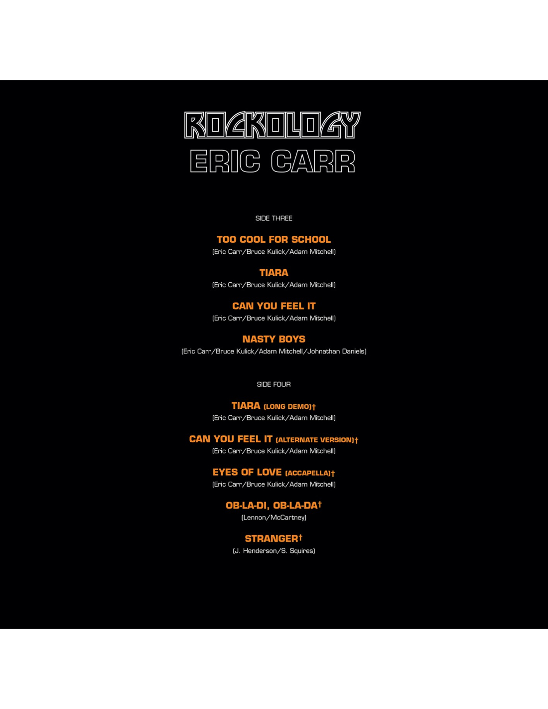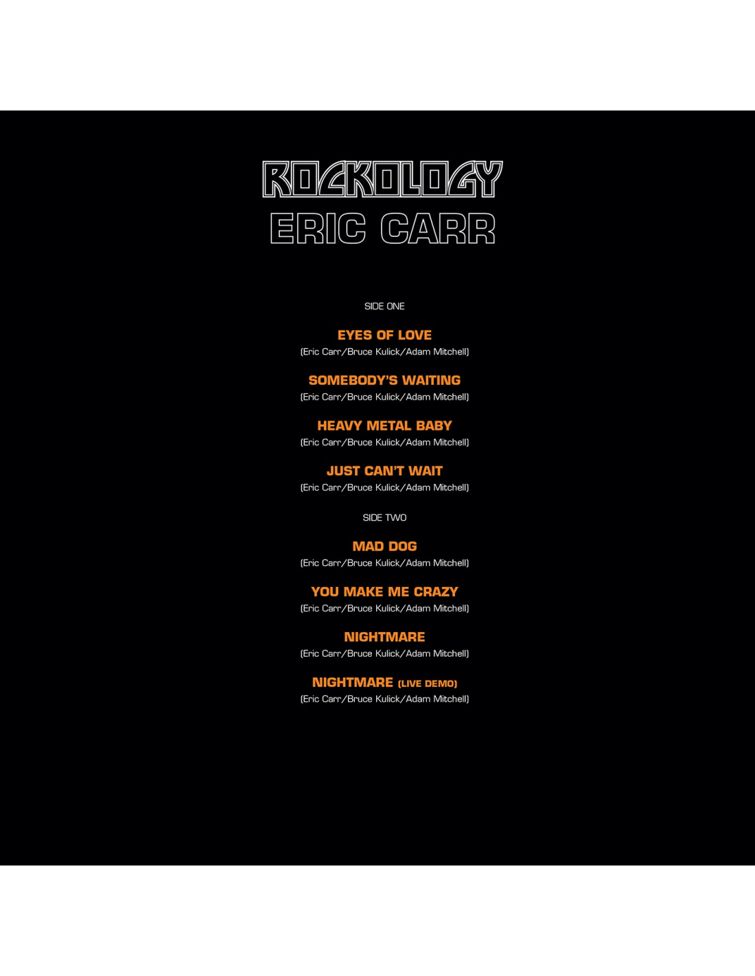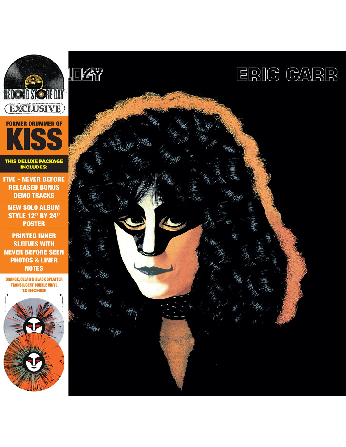 Eric Carr remained a member of KISS until his death from heart cancer. He took up the rustic orange persona of "The Fox" and was one of the fan favorites. Rockology is Eric Carr's only solo record which features former KISS guitarist Bruce Kulick. This package was designed and mastered along with Loretta Carr (Eric's sister) to fall in line as the 5th KISS solo album. The cover is Eric in his "Fox" make up, the 12" by 24" poster is in the same style of the original 4 solo KISS releases. Printed inner sleeves include never before seen photos & liner notes. The vinyl is an orange/clear/black splatter with "Fox" record labels. The 2nd LP features 5 never before released demo tracks. All extras are noted on the packaging OBI side spine. This is a MUST for fans/collectors of KISS.