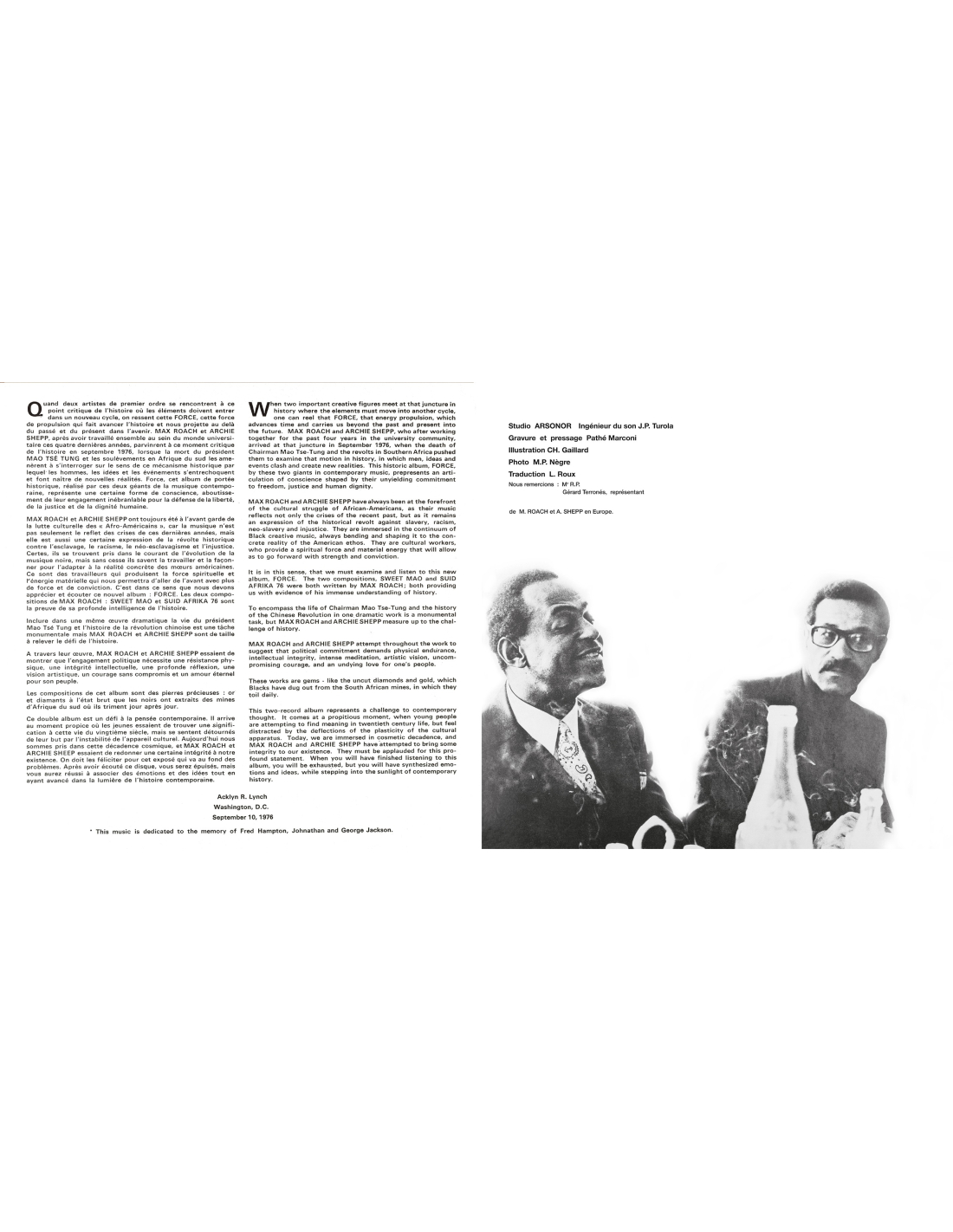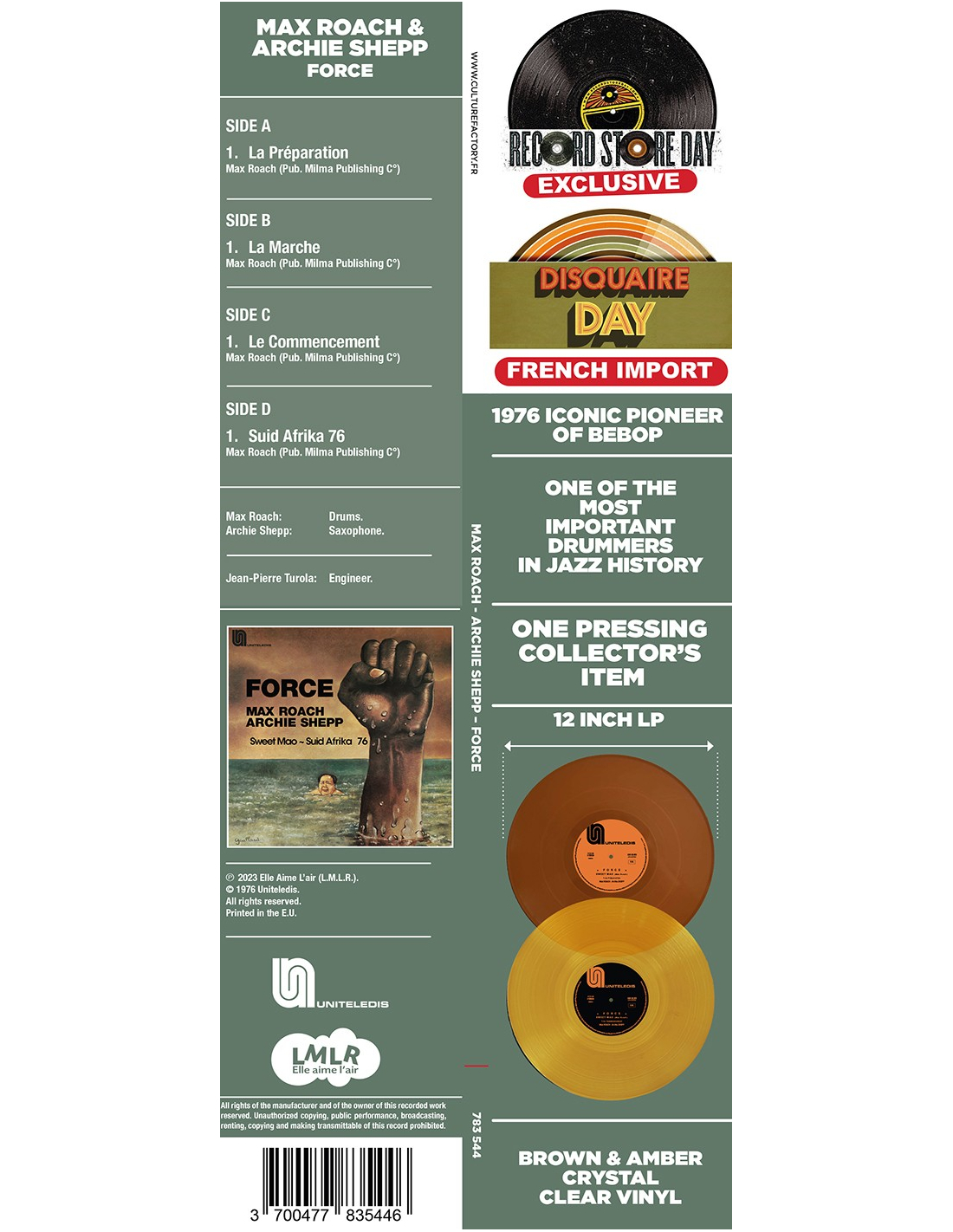 Max Roach & Archie Shepp - Force - Sweet Mao - Suid Afrika 76 - RSD 2023 (Vinyle)