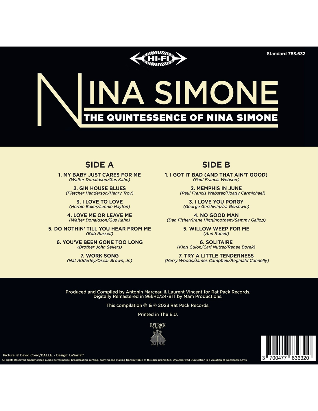 With more than fifty albums recorded, Nina Simone is one of the main representatives of vocal jazz. Her original style comes from the fusion of gospel and pop songs with classical music. From My Baby Just Cares for Me to Willow Weep for Me, discover the quintessence of Her Highness NINA SIMONE. Powerful and radical, Nina is a true source of inspiration for many generations. 180GRAM VINYL - LIMITED EDITION 1,000 UNITS - ONE TIME PRESSING.