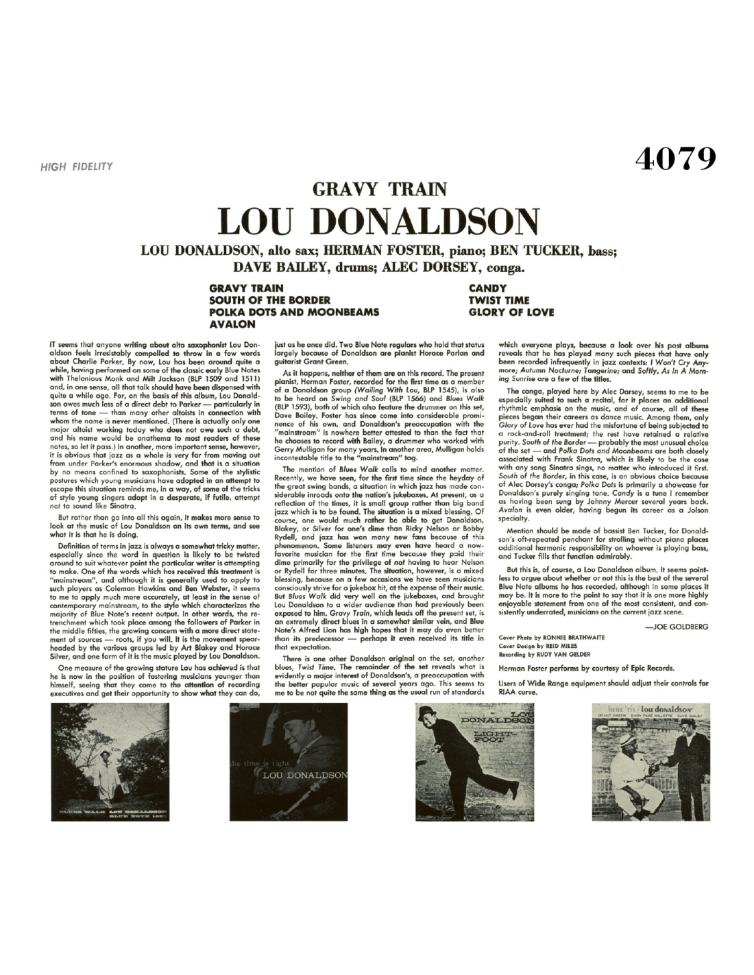 Son Soul-Jazz est ici mis en valeur par le groove des musiciens qui l’accompagnent, c’est-à-dire : Herman Foster au piano, Ben Tucker à la basse, Dave Bailey à la batterie et Alec Dorsey aux congas.