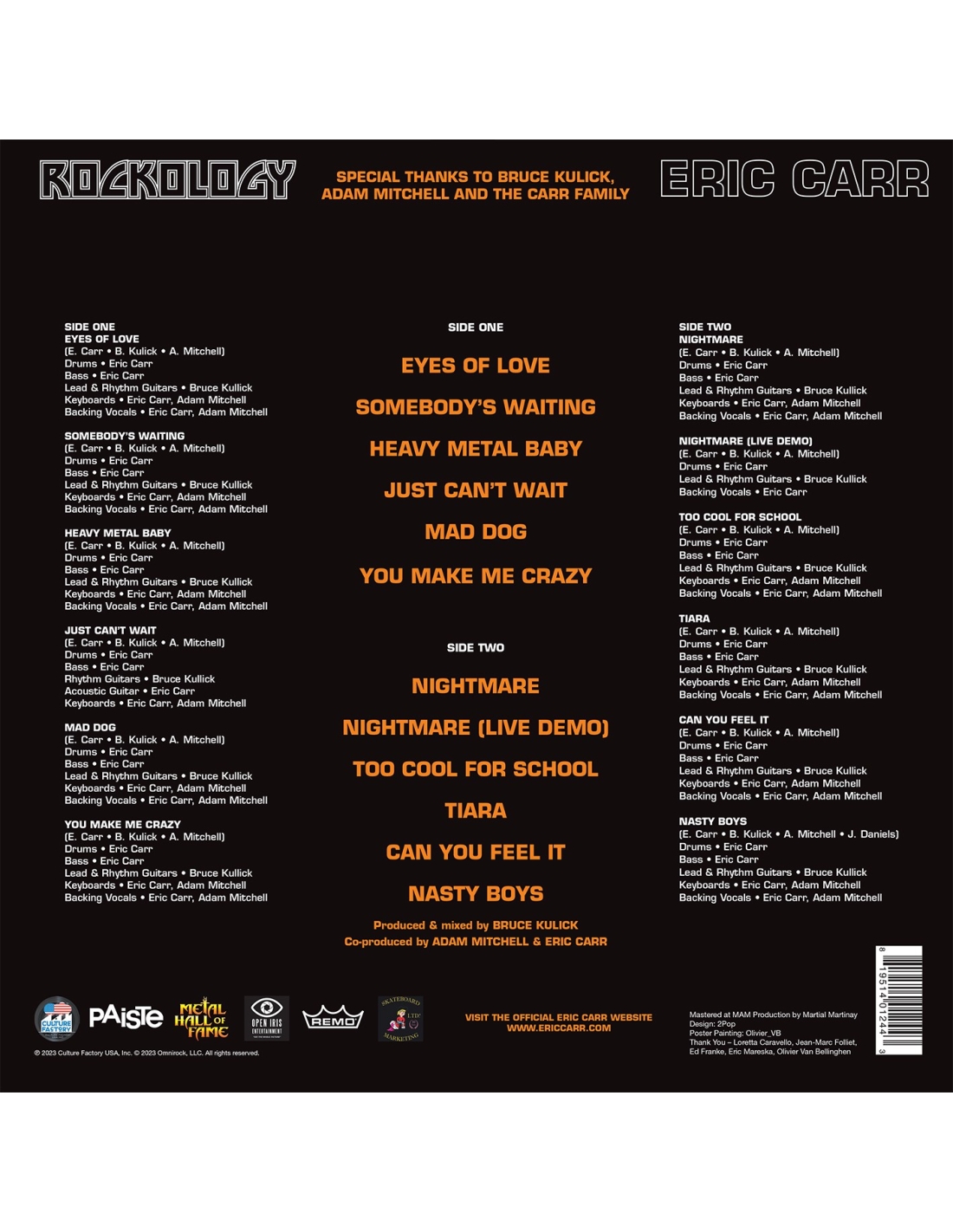 Voici la pièce que tous les fans de Kiss doivent avoir... l'album solo du Batteur Eric Carr (Rockology)... Réédité pour la première fois en Picture-Disc... dans le même esprit que ceux des autres membres du groupe !
