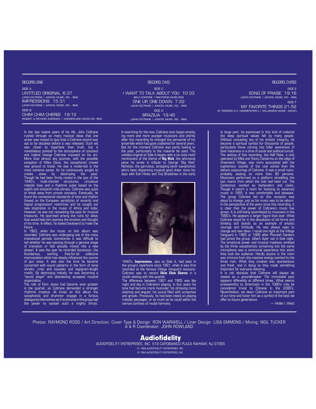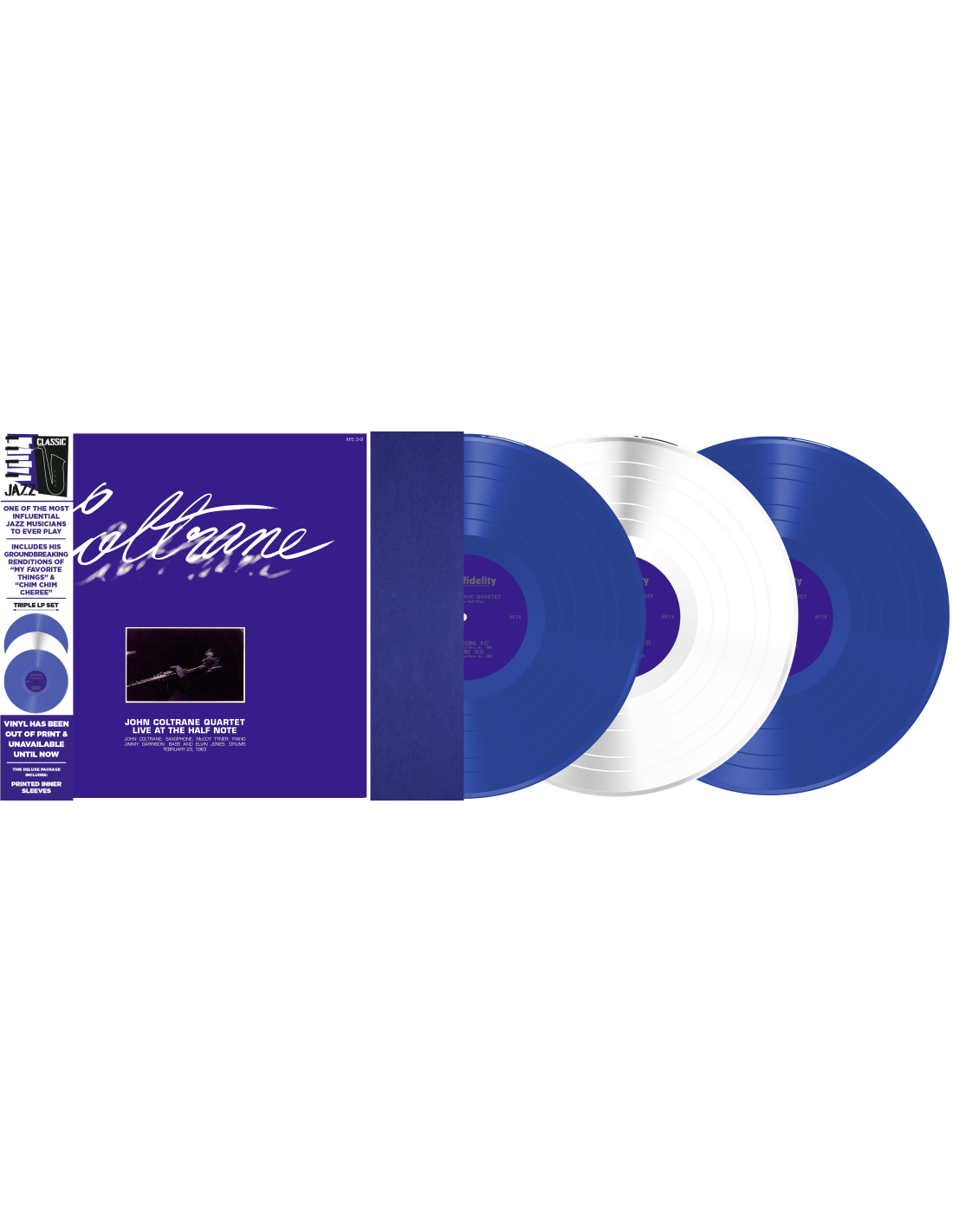 John Coltrane's February 23, 1963 performance at New York's Half Note with his "Classic Quartet" marked a pivotal moment in jazz. Through intense improvisations on "Impressions" and "My Favorite Things," Coltrane showcased his avant-garde style, virtuosity, and spiritual quest, pushing the boundaries of jazz innovation. TRIPLE LP in BLUE and WHITE, limited to 1,000 copies.
