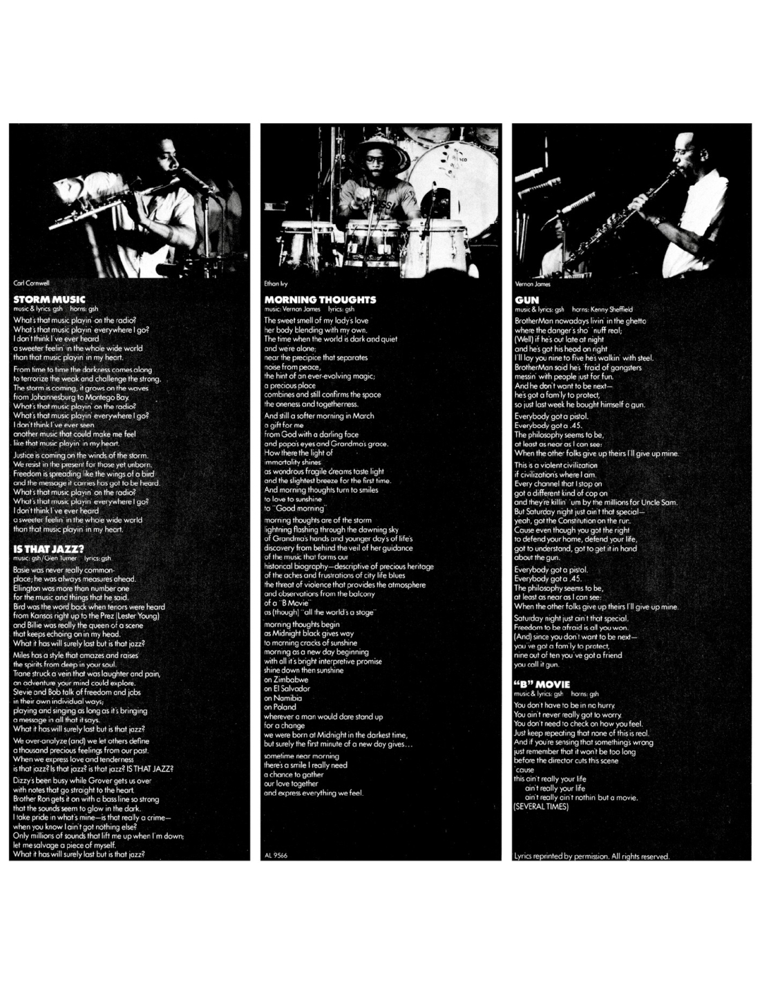 Reflections – album studio de 1981, largement considéré comme l’une de ses meilleures oeuvres, salué pour la force de son commentaire social et pour son mélange de spoken word et de sonorités jazz. Il comprend le single “B Movie”, souvent décrit comme le “rap politique le plus intelligent” de Gil Scott-Heron, accompagné par le Midnight Band. L’album contient également les titres désormais classiques “Grandma’s Hands” et “Inner City Blues”.