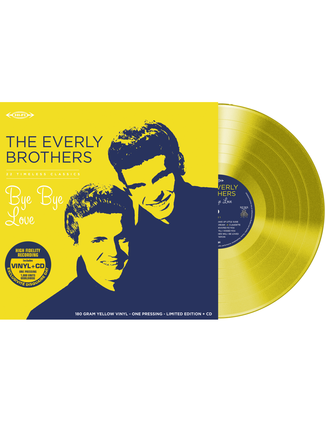 Bye Bye Love by The Everly Brothers is a must-have compilation of their greatest songs, enhanced by stunning remastering. Showcasing their mesmerizing voices through timeless classics, this special edition shines with a fantastic yellow hue. A vibrant tribute to a legendary duo. YELLOW vinyl 180g + CD, limited edition of 1,000 copies.