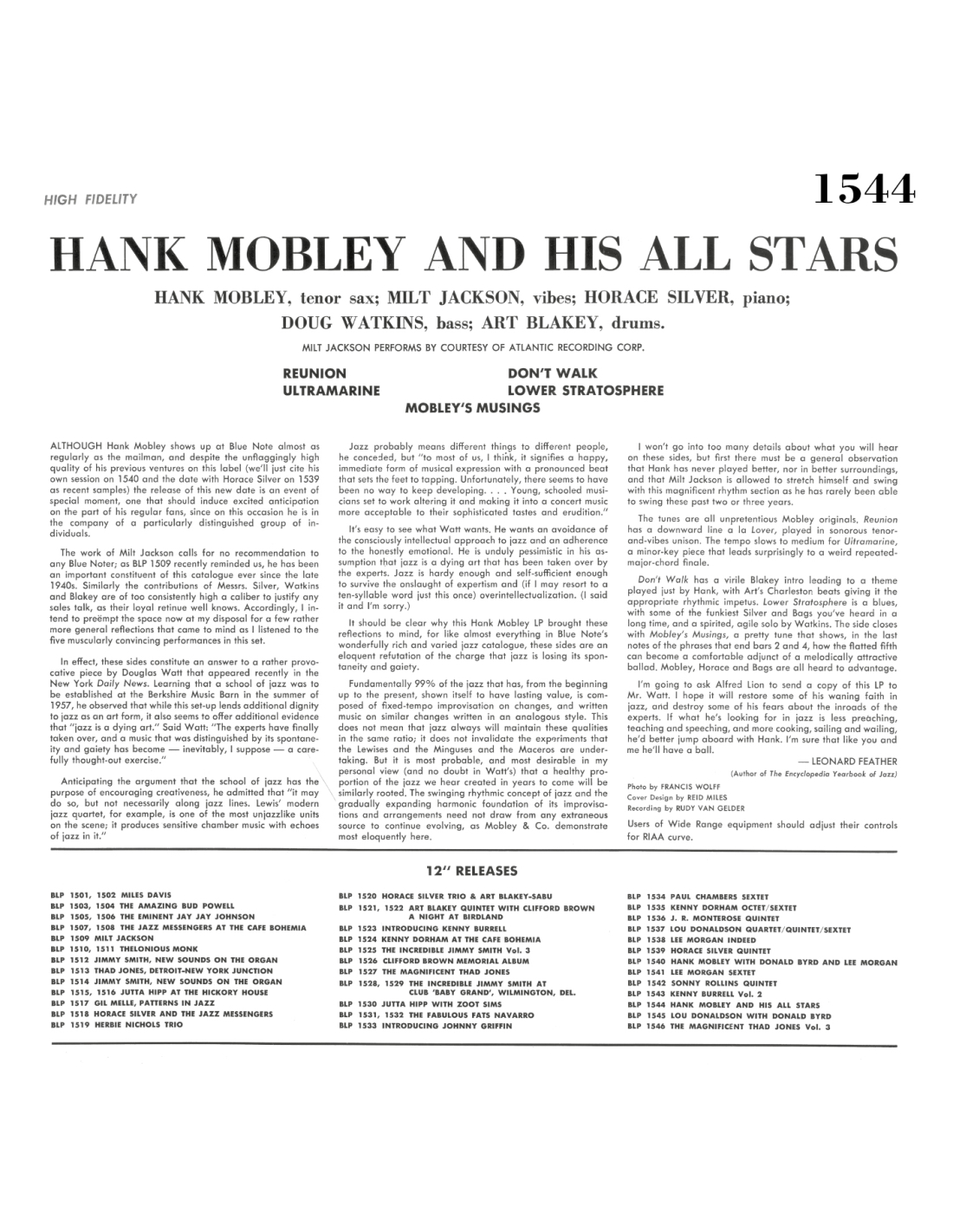 Hank Mobley and His All Stars réunit Mobley au centre d’un groupe qui porte bien son nom.