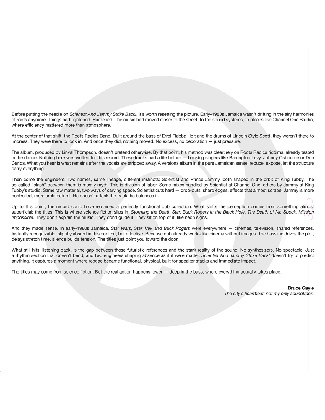 Sorti en 1982, Scientist & Jammy Strike Back! capture la puissance brute du dub, où la voix disparaît pour laisser place à la console.