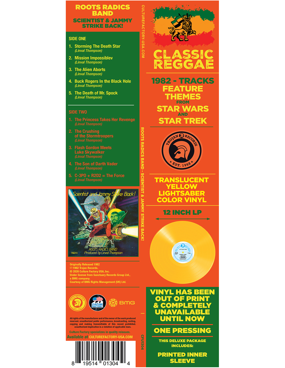 Sous l’impulsion de Scientist et Prince Jammy, chaque piste devient un terrain d’expérimentation sonore. Porté par les riddims implacables des Roots Radics Band et diffusé par Trojan Records, l’album brille sur des titres comme “Storming the Death Star”. Une immersion dub essentielle, présentée en édition limitée vinyle JAUNE.